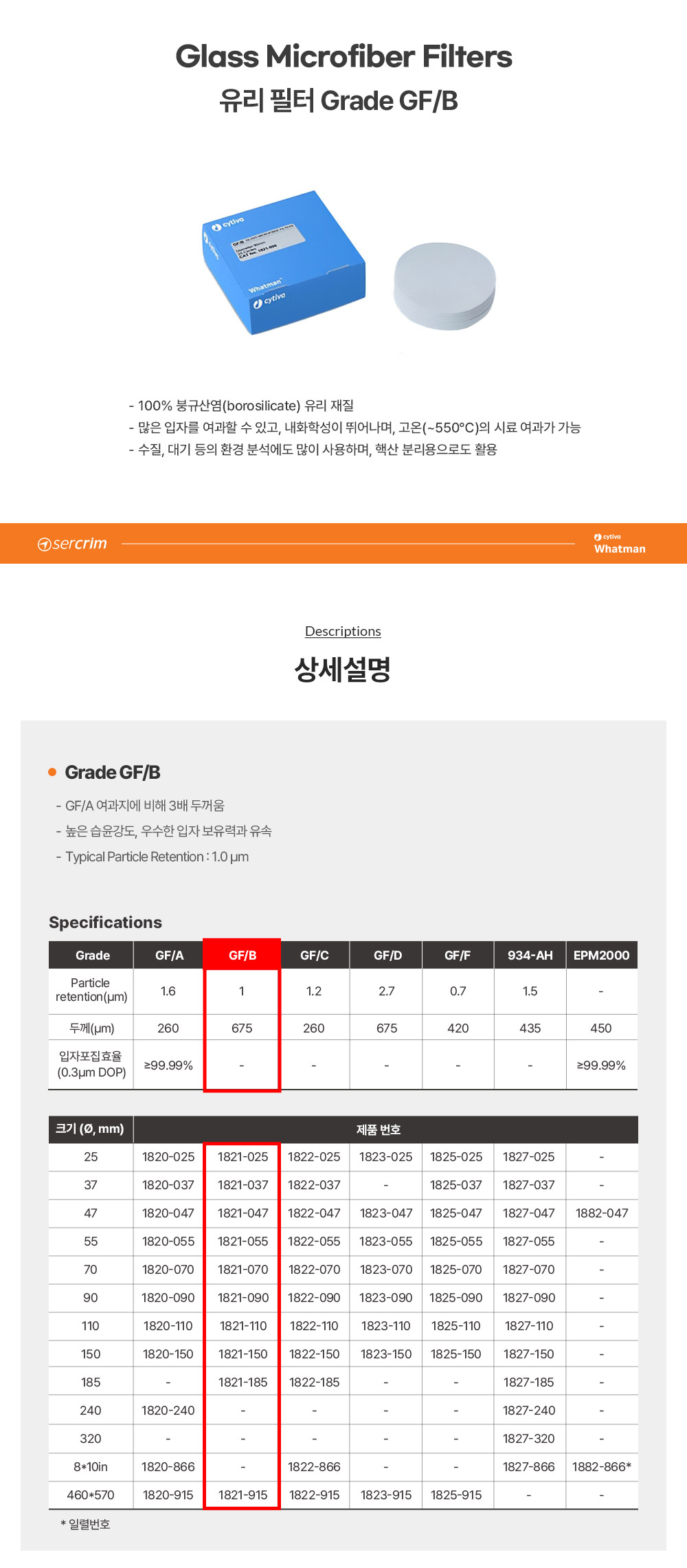 • CYTIVA WHATMAN 1821-047 /  GF/B 유리섬유 필터(Glass Microfiber Filter), 47mm[100EA/PK]