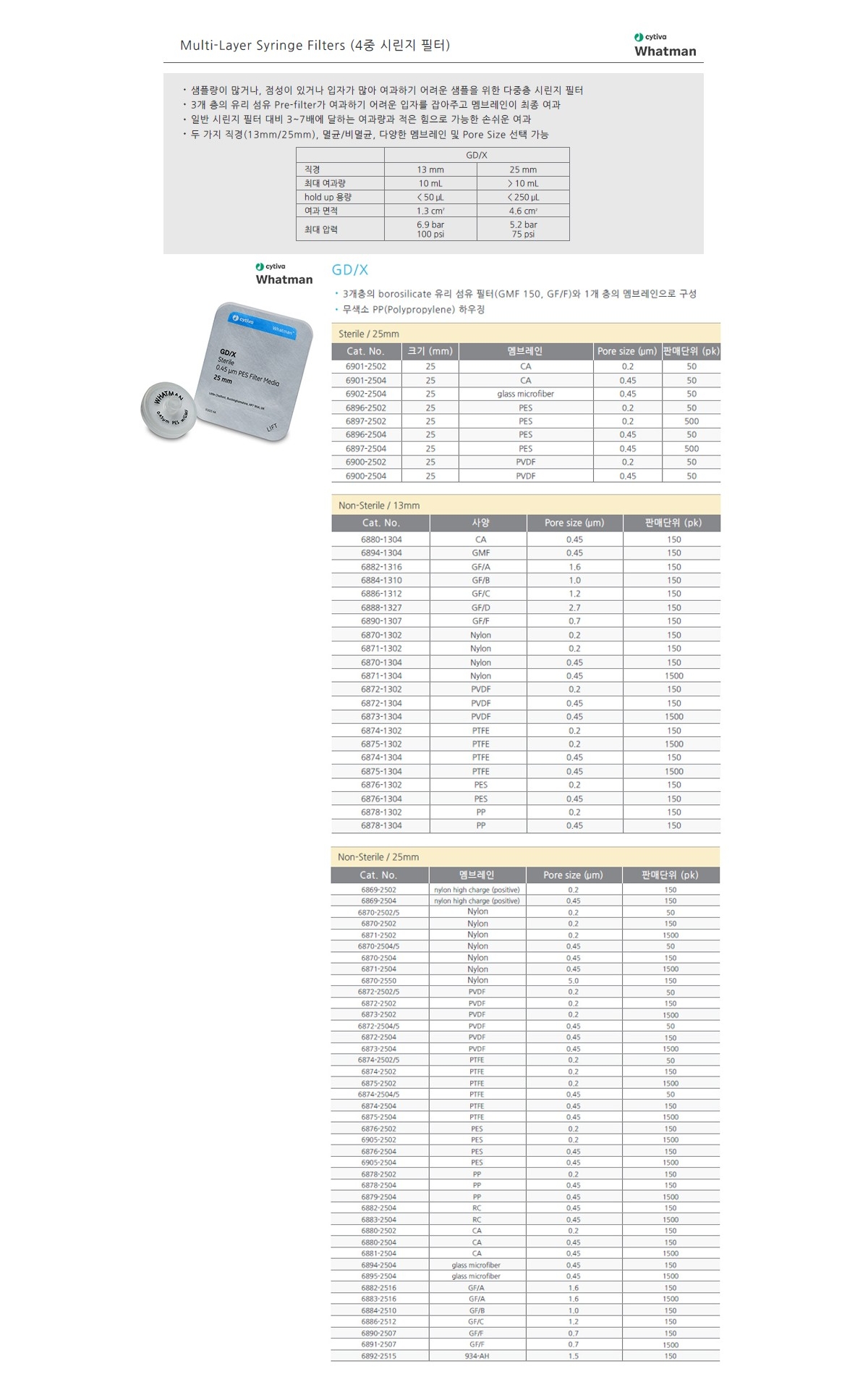 CYTIVA WHATMAN 6872-2502/5 / GD/X 시린지 필터(Syringe Filter), PVDF 25mm 0.2µm[50EA/PK] 209,000원 / 배송비 : 3,000원