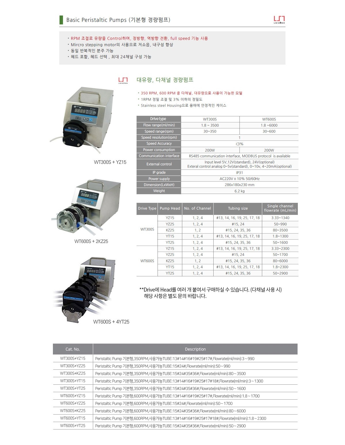 • LST-LeadFluid WT300S+KZ25 / 정량펌프(Peristaltic Pump) 기본형 대유량, 1채널,300rpm, Max.3500ml/min[1EA]
