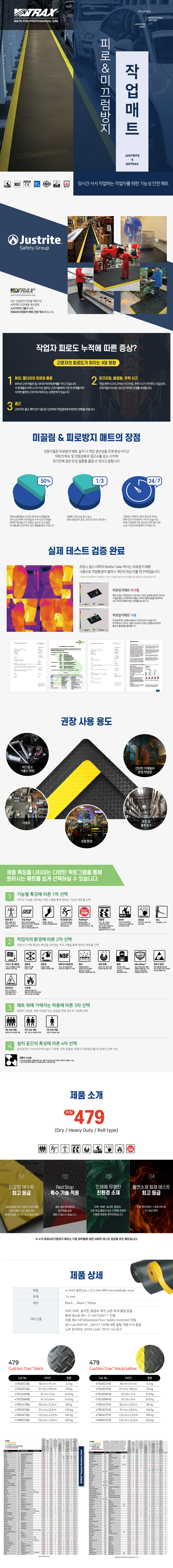 이미지 확대보기Notrax 479S0035YB / 피로방지 기능성 안전 매트, 프리미엄/다용도 479 건식매트 (마이크로셀롤러PVC코팅 비닐/검정/노랑)/910x1500mm/8kg[1EA]