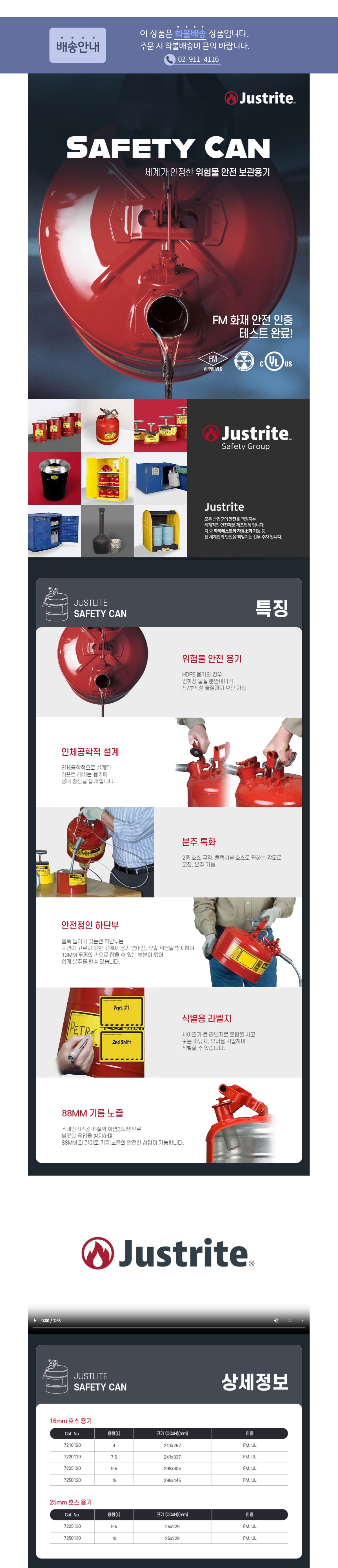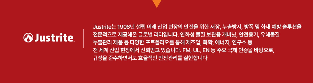 이미지 확대보기Justrite 7220120 / FM인증 인화성 물질 안전보관 용기 2갤런 16mm 호스 (철제/8L/빨강)/OD 241x337mm/2.5kg[1EA]