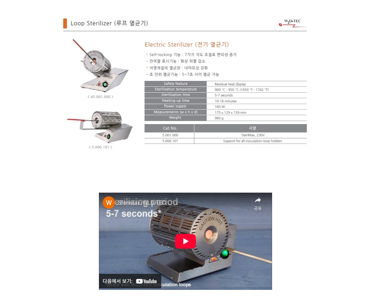 • WLD-TEC 5.000.101 / 전기 멸균기(Electric Sterilizer), SteriMax smart 루프 멸균기[1EA]