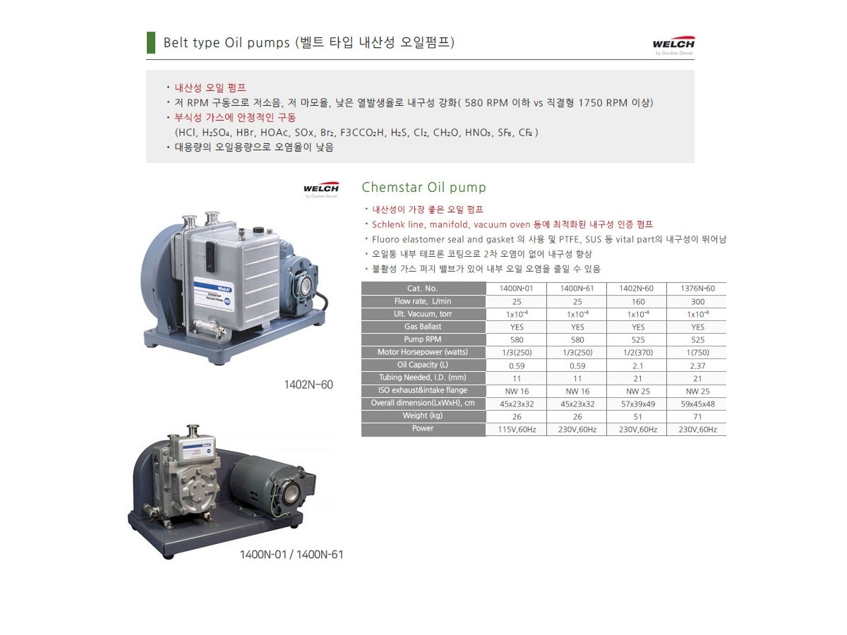 • Welch 1402N-60 / 벨트 타입 내산성 오일 펌프(Oil pump) Chemstar, 160L/min, 1*10-4torr[1EA]