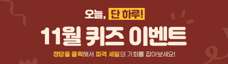 (종료)단 하루, 퀴즈 정답을 맞혀 인기 아이템을 할인가로 구매해 보세요!