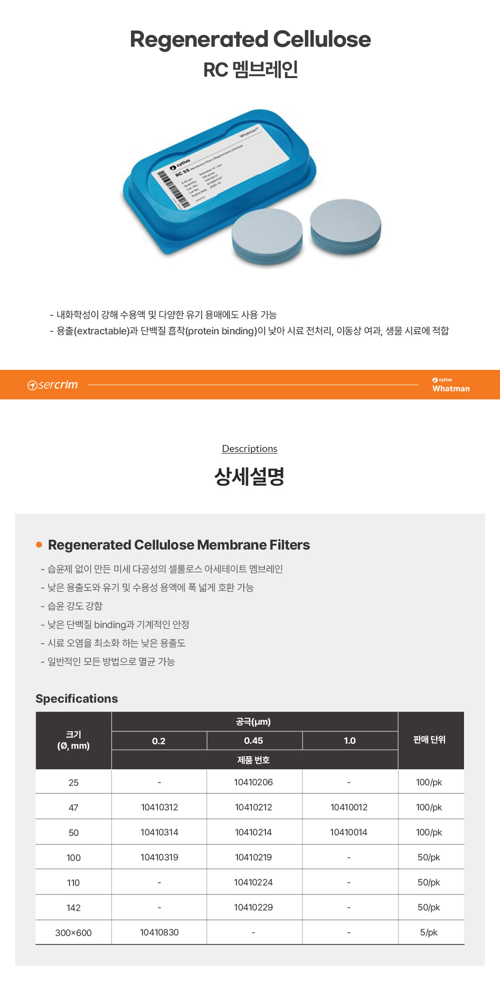 이미지 확대보기CYTIVA WHATMAN 10410219 / RC 멤브레인 필터(Membrane Filter), 100mm 0.45?m, Regenerated Cellulose[25EA/PK]