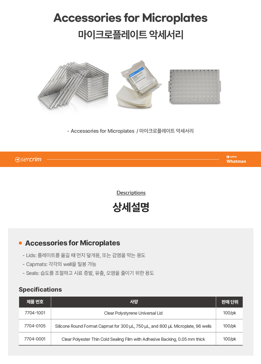 • CYTIVA WHATMAN 7704-0001 / 마이크로플레이트 악세서리 UNISEAL, clear PE[100EA/PK]