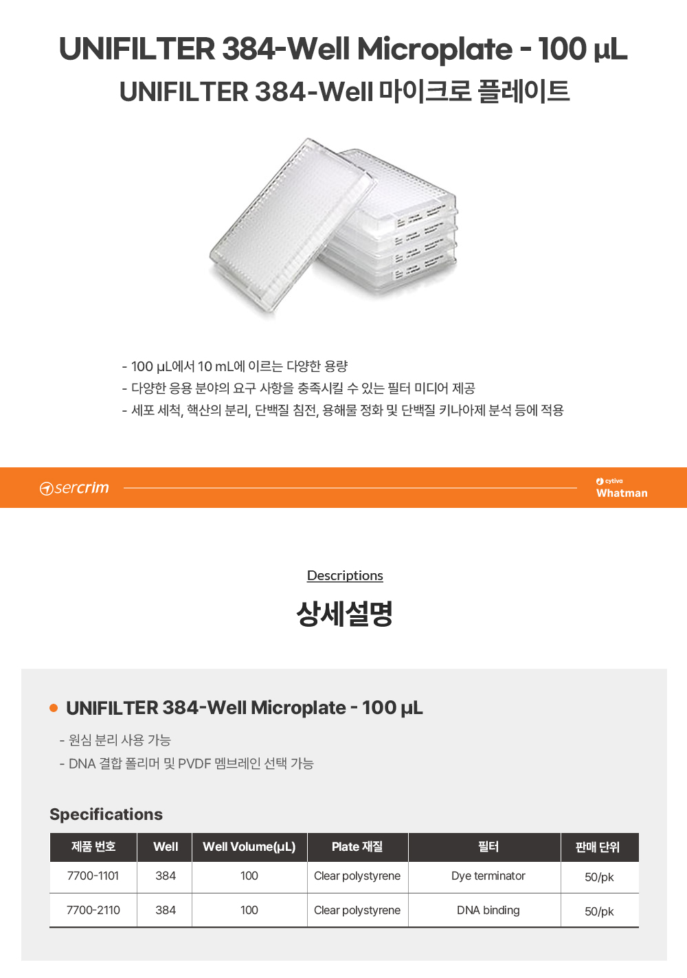• CYTIVA WHATMAN 7700-1101 / UNIFILTER 필터장착 마이크로플레이트(Microplate), 384well 100μL, GF/C[50EA/PK]