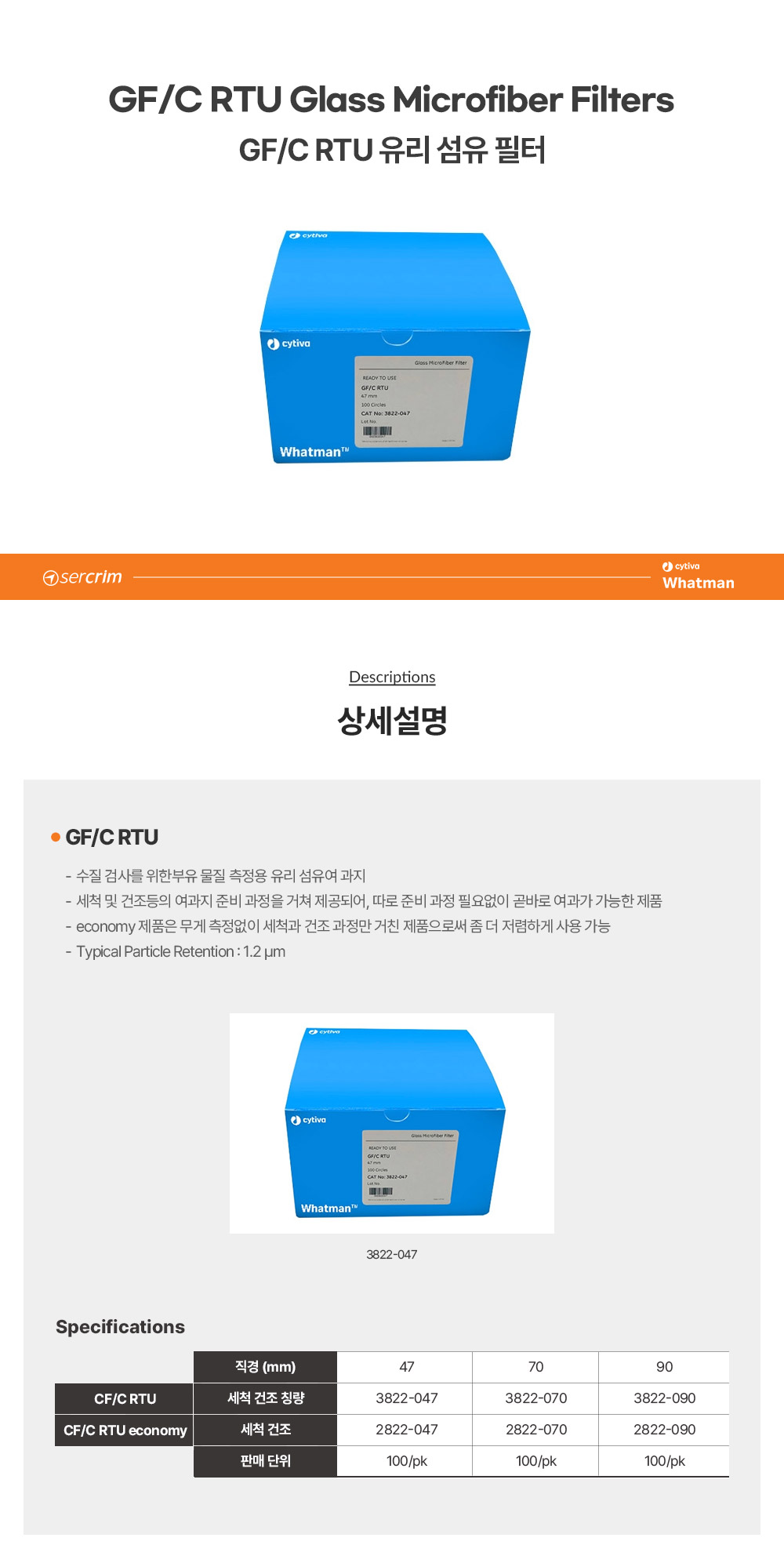 CYTIVA WHATMAN 2822-047 /  GF/C Ready To Use 유리섬유 필터(Glass Microfiber Filter), 세척/건조, 47mm[100EA/PK	]