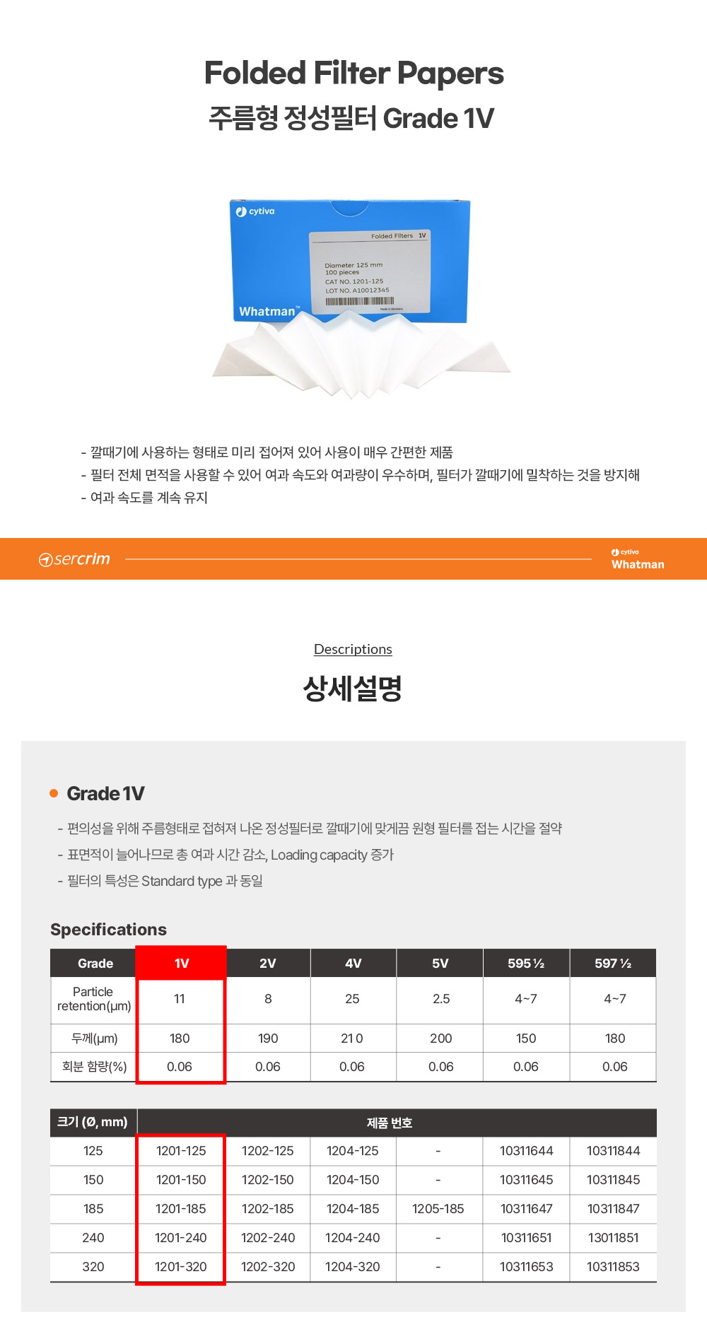 • CYTIVA WHATMAN 1201-150 /  Grade 1V 정성 필터 (Qualitative Filter Paper), 주름형, 150mm[100EA/PK	]