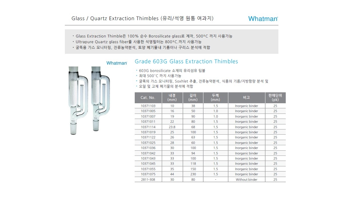 • CYTIVA WHATMAN 10371055 / Grade 603G 유리 원통 여과지(Thimble Filter), 35x150mm, 두께 1.5mm[25EA/PK]