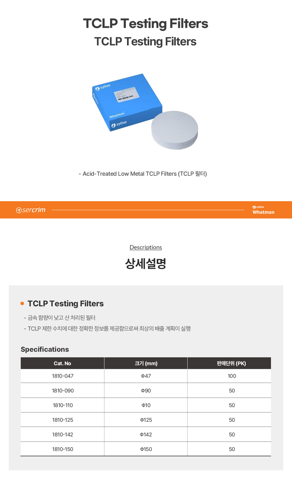 • CYTIVA WHATMAN 1810-125 / TCLP Testing Filters 유리섬유 필터(Glass Microfiber Filter), 125mm[50EA/PK]