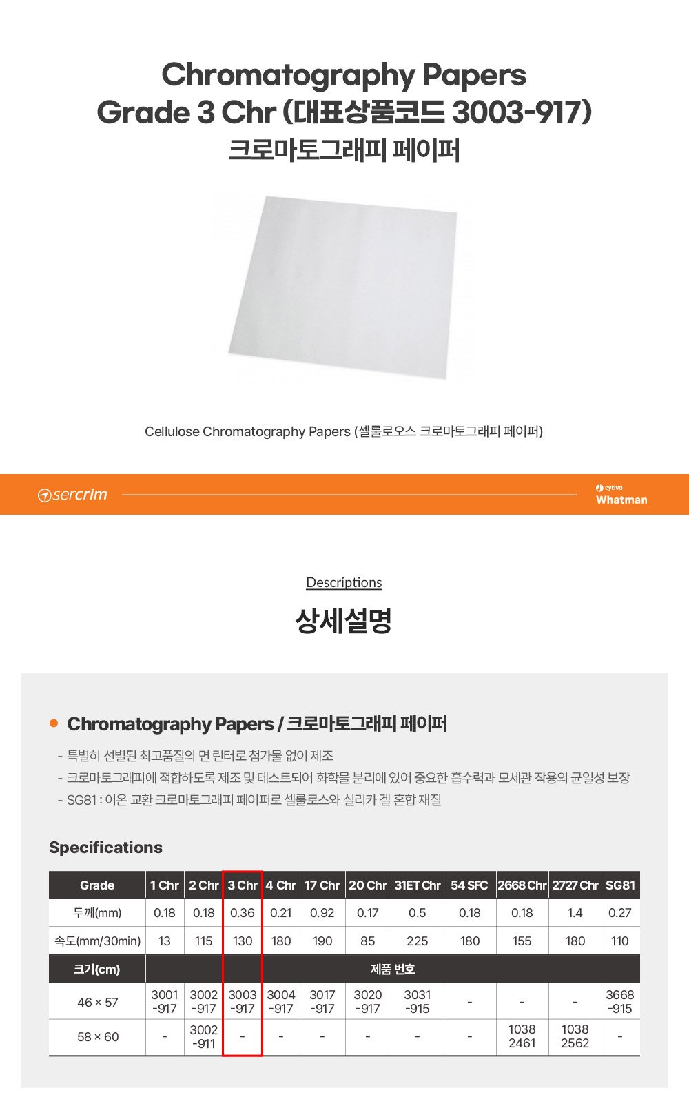 이미지 확대보기CYTIVA WHATMAN 3003-917 / Grade 3 Chr 크로마토그래피 종이(Chromatography Paper), 460x570mm[100EA/PK]
