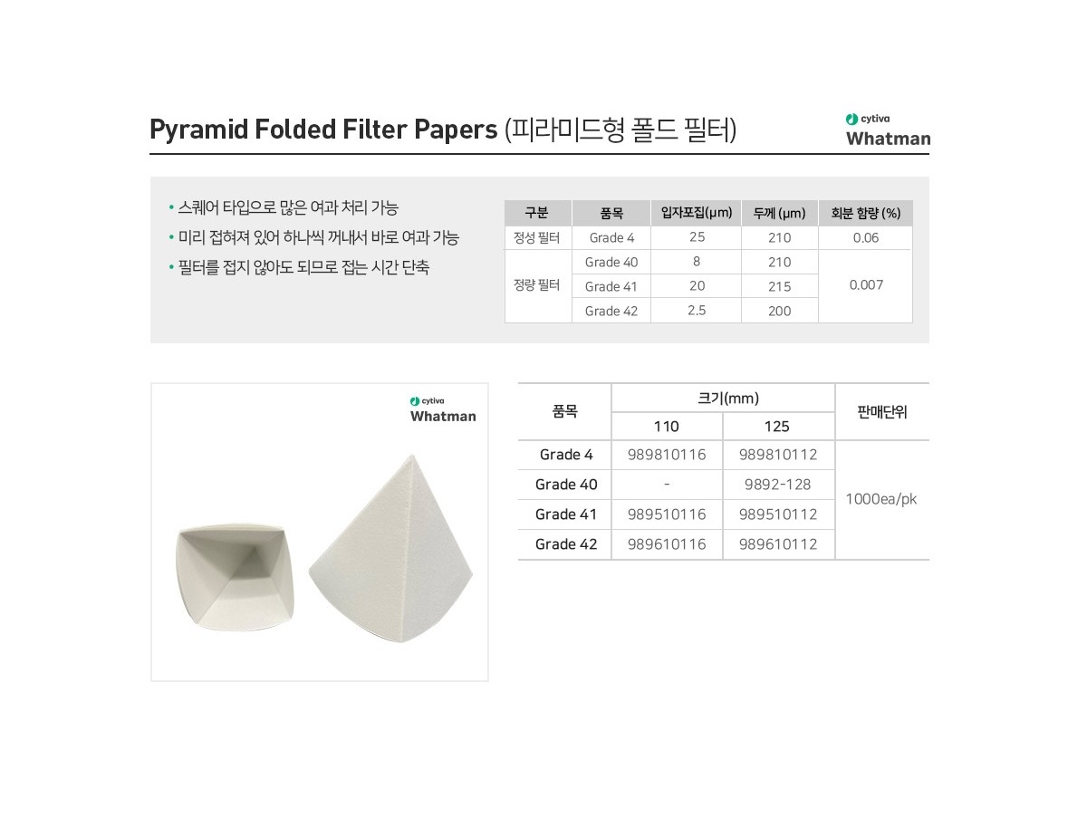 • CYTIVA WHATMAN 989610116 /  Grade 42 정량 필터(Quantitative Filter Paper), Pyramid, 110mm[1000EA/PK]