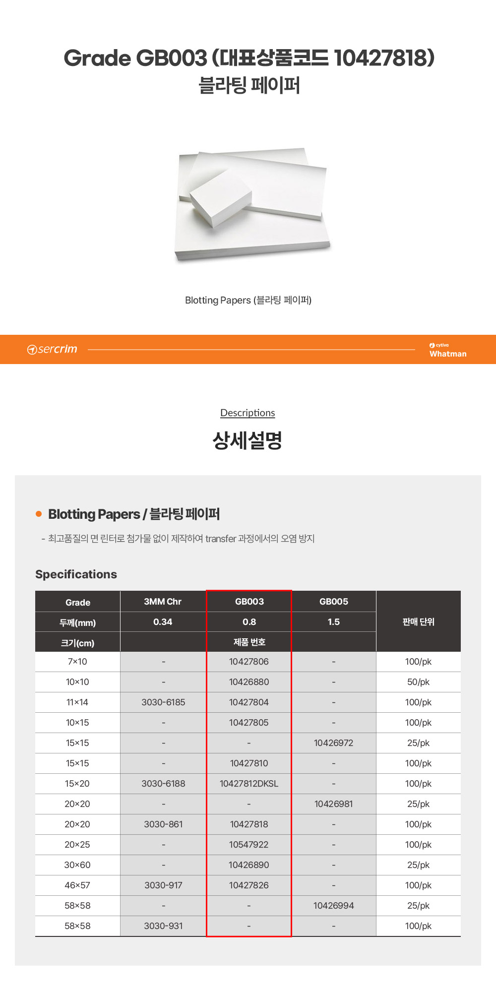 • CYTIVA WHATMAN 10547922 /  GB003 블라팅 페이퍼(Blotting Paper), 200x250mm[100EA/PK]