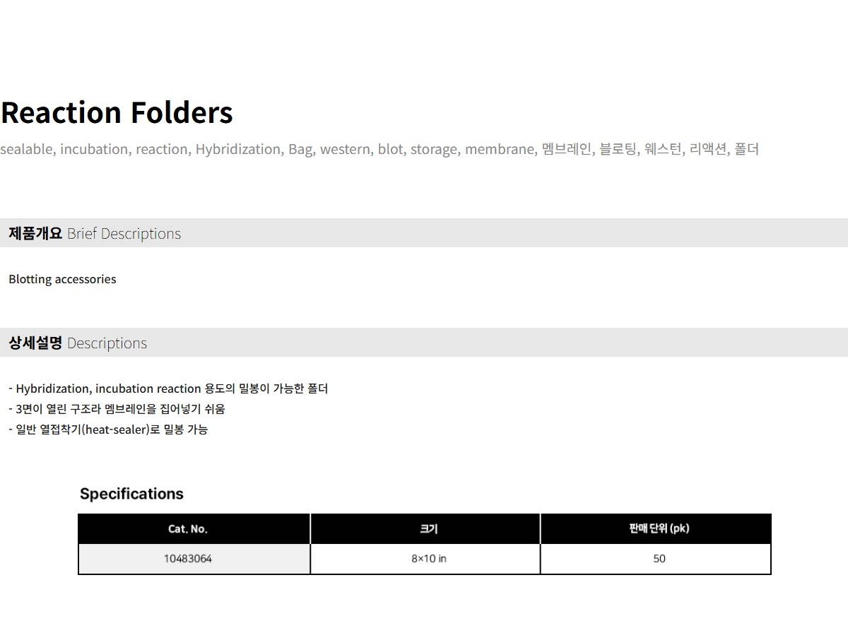 CYTIVA WHATMAN 10483064 / Reaction Folder, 203.2x241.3mm(8x9.5in)[50EA/PK] 272,800원 / 배송비 : 3,000원