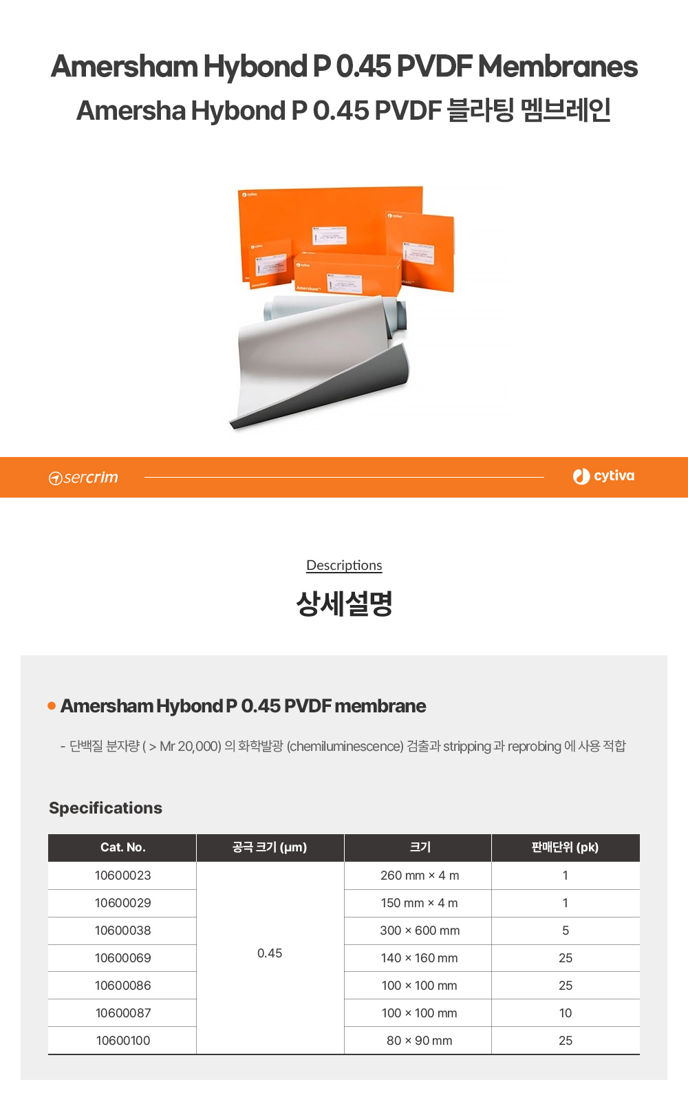 • CYTIVA WHATMAN 10600029 / Amersham Hybond P 블라팅 멤브레인(Blotting Membrane), PVDF 0.45µm, 150mmx4m[1EA/PK	]