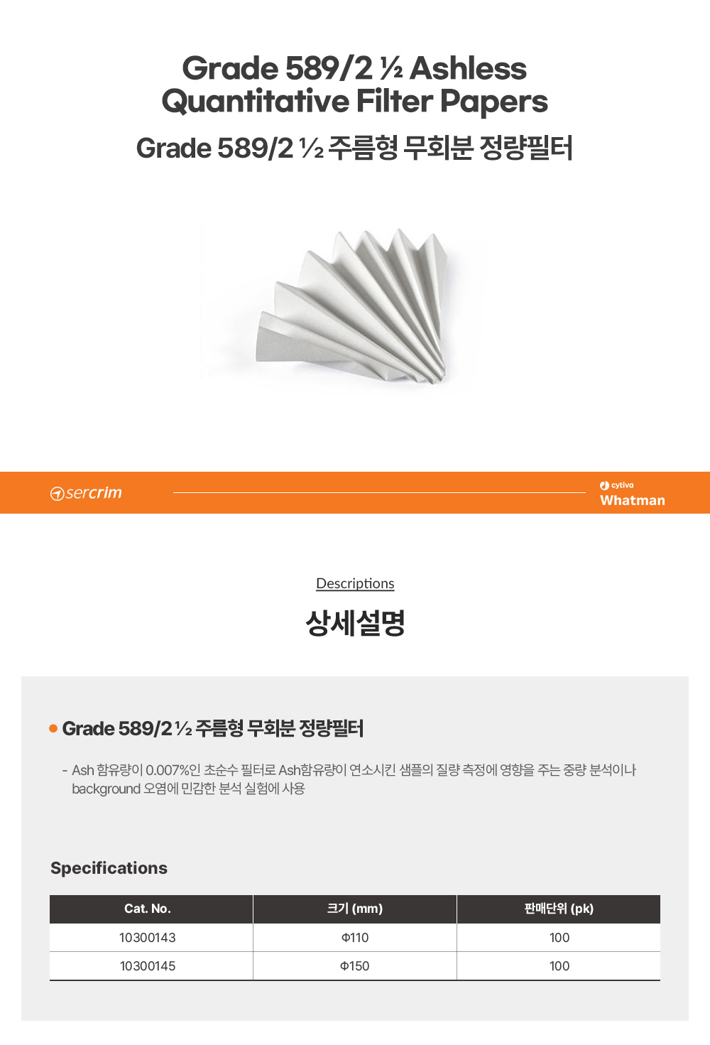 • CYTIVA WHATMAN 10300045 / Grade 589/1 ½ 정량 필터(Quantitative Filter Paper), 주름형, 150mm[100EA/PK]