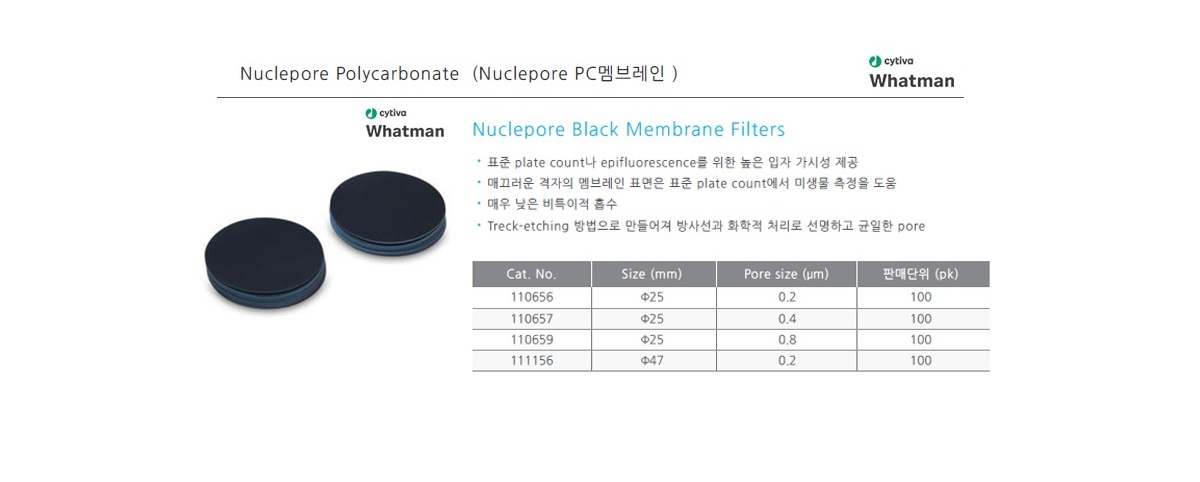 • CYTIVA WHATMAN 110659 / Nuclepore Black PC 멤브레인 필터(Membrane Filter), 25mm 0.8μm, Polycarbonate[단종]