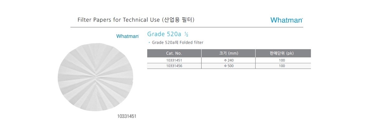 • CYTIVA WHATMAN 10331451 /  Grade 520a ½ 종이 필터, 주름형, 240mm[100EA/PK]