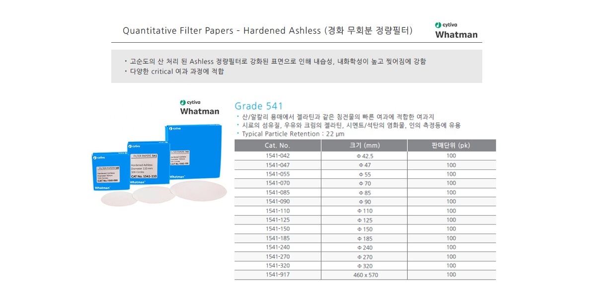 CYTIVA WHATMAN 1541-917 / Grade 541 경화 무회분 정량 필터(Quantitative Filter Paper- Hardened Ashless), 460x570mm[100EA/PK]