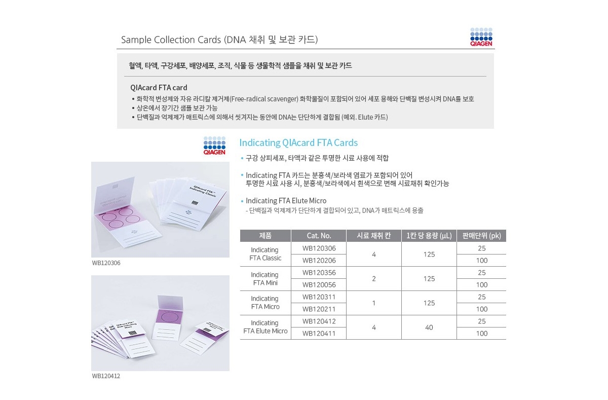 QIAGEN WB120411 / DNA 채취 및 보관   QIAcard Indicating FTA 카드,  FTA Elute Micro Card[100EA/PK]
