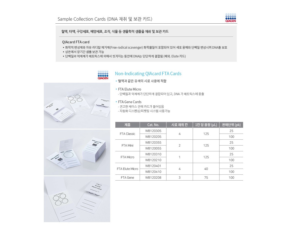 QIAGEN WB120310 / DNA 채취 및 보관 Non-Indicating QIAcard FTA 카드, FTA MICRO CARD[25EA/PK] 226,600원 / 배송비 : 3,000원