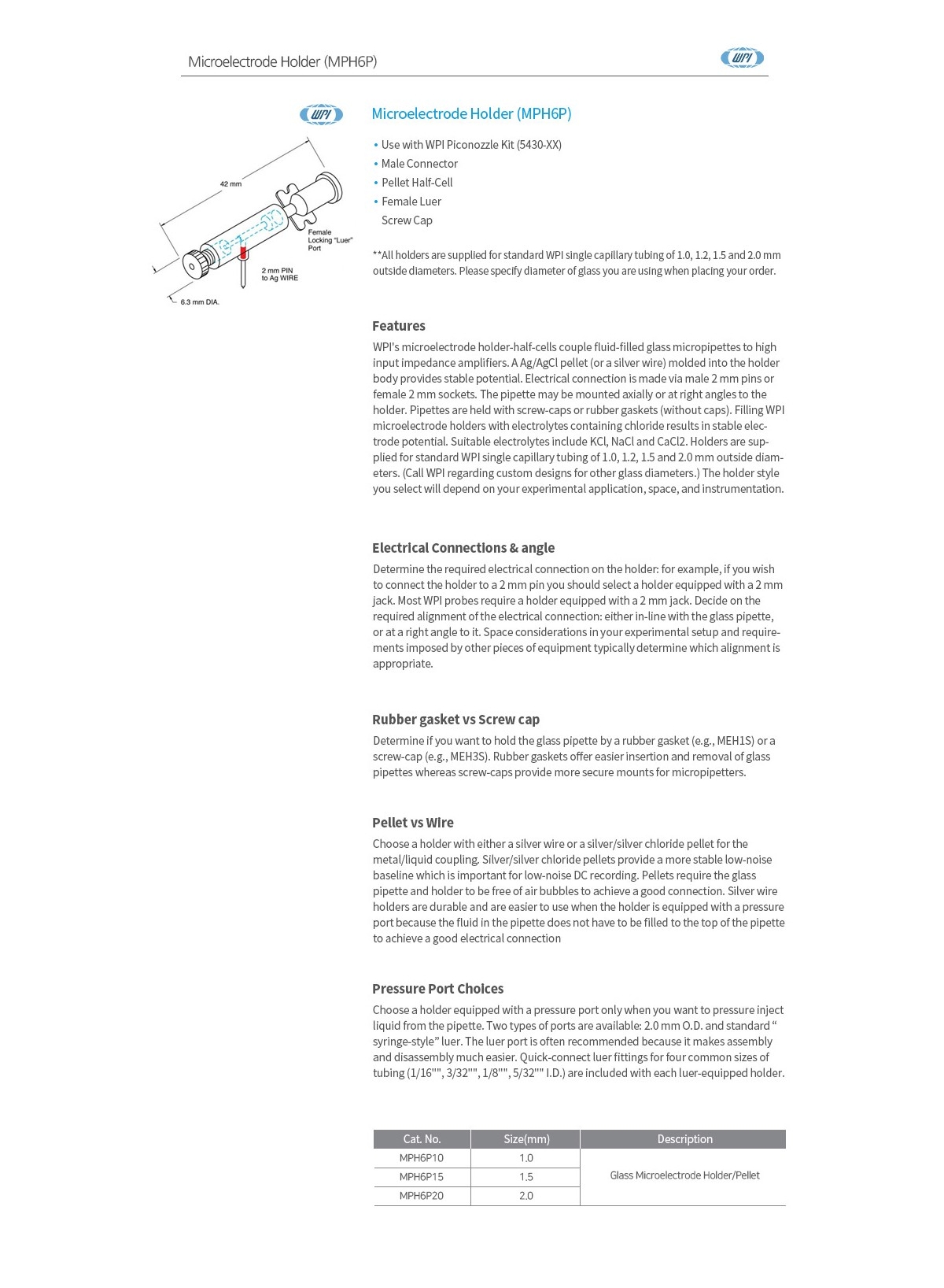 • WPI MPH6P15 / 마이크로전극 홀더 (Microelectrode Holder), MPH6P, 1.5MM[1EA]
