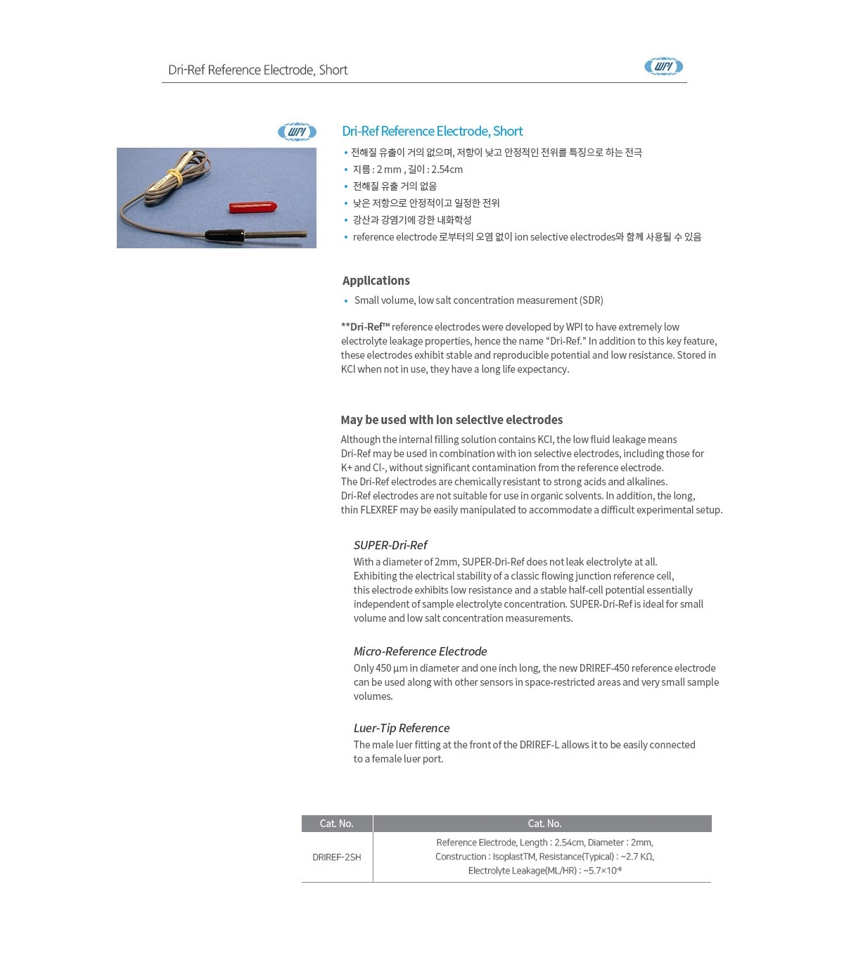 WPI DriRef-2SH / 드라이 레프 전극(Dri-Ref Reference Electrode), 2MM, short[1EA] 377,300원 / 배송비 : 3,000원